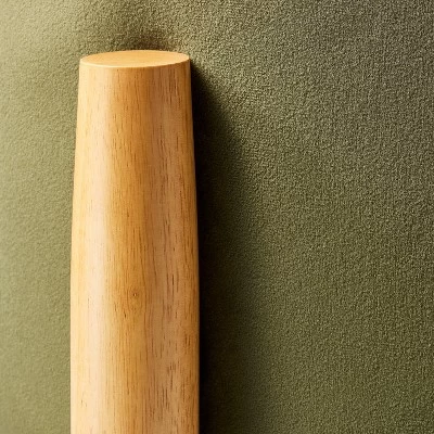 Add luxe style to your seating collection with the Elroy Round Velvet Ottoman with Wooden Legs from Threshold™ designed with Studio McGee. This round ottoman is upholstered in velvet fabric for an eye-catching look. Set on a wooden frame with four legs, it provides a comfy surface for sitting or resting your feet, and it can be spot cleaned or wiped clean for a quick refresh as needed.