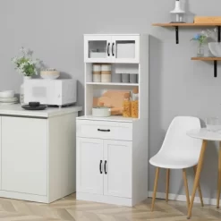 HOMCOM Freestanding Kitchen Pantry, 4-Door Buffet Cabinet With Hutch, Coffee Bar With Adjustable Shelves, 63.5 Inches, White