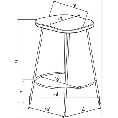 - Backless stool with a wood seat and metal legs