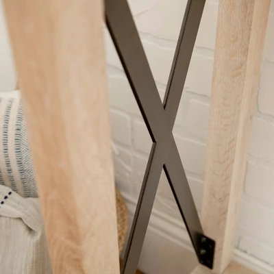 Reinvent your living room or entryway with the Sophie Rustic Farmhouse X-Frame Entry Table from Saracina Home. Metal corner brackets and X-side accents foster a country-inspired, homey feel that greets you each time you walk in the door. Decorate the tabletop with vases, house plants, or an accent mirror, and fill the lower shelf with toy bins, shoes, or seasonal decor. Pair with other pieces from Saracina Home’s Sophie collection to tie your space together.